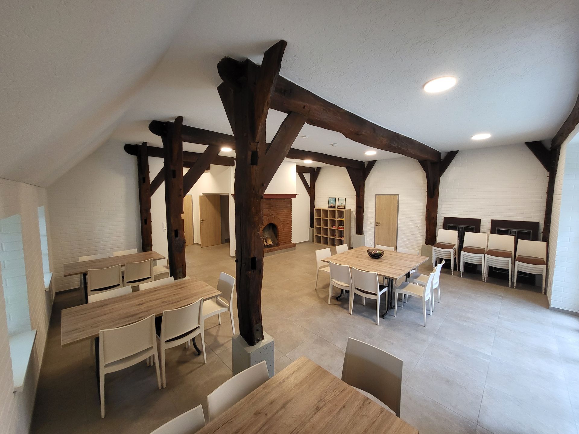 Das Haus verfügt über einen großen Aufenthaltsraum mit offenen Kamin , einer großzügigen Küchen mit verstellbarem Mittelblock für das gemeinsame Kochen, zwei Schlafräume (jeweils 10 Schlafgelegenheiten), ein barrierefreier Schlafraum mit entsprechendem Bad, Vorratsraum, 2 Terrassen, Feuerstelle und Grill sowie ein tolles Außengelände mit altem Baumbestand.